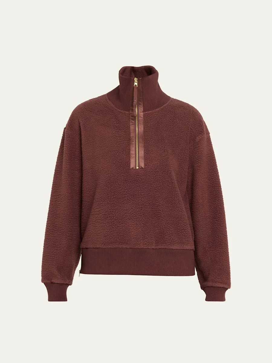 Varley "Roselle" fleece sweatshirt Stand collar; half-zip front Dropped shoulders Long sleeves Relaxed fit Ribbed cuffs and hem Pullover style Recycled polyester Imported Online Inquiries: BGS21_T8VLN| Store Inquiries: #4377647