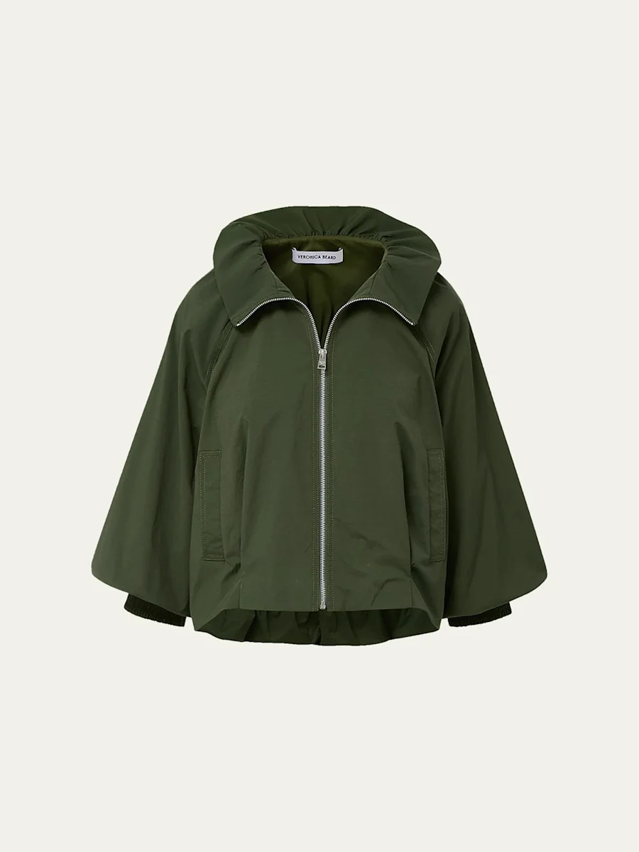Designed with a relaxed, bubble silhouette, the "Circe" jacket by Veronica Beard is crafted from a technical fabric, perfect for seasonal styling and layering. Funnel neckline Dropped shoulders Long blouson sleeves with elastic cuffs Side pockets Oversized fit Zipfront Nylon/polyamide/cotton/elastane Dry clean Made in USA SIZE amp; FITModel measurements: 5'10" tall Model is wearing a US size 4/Small