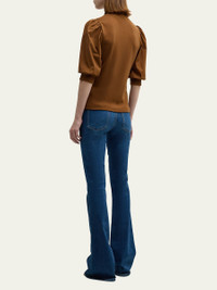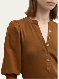 Veronica Beard Jeans "Coralee" knit top featuring short puffed sleeves V neckline Easy fit Hem sits at the hip Half button-front Cotton/elastane Machine wash cold Imported Online Inquiries: BGS21_T90YZ| Store Inquiries: #4651800
