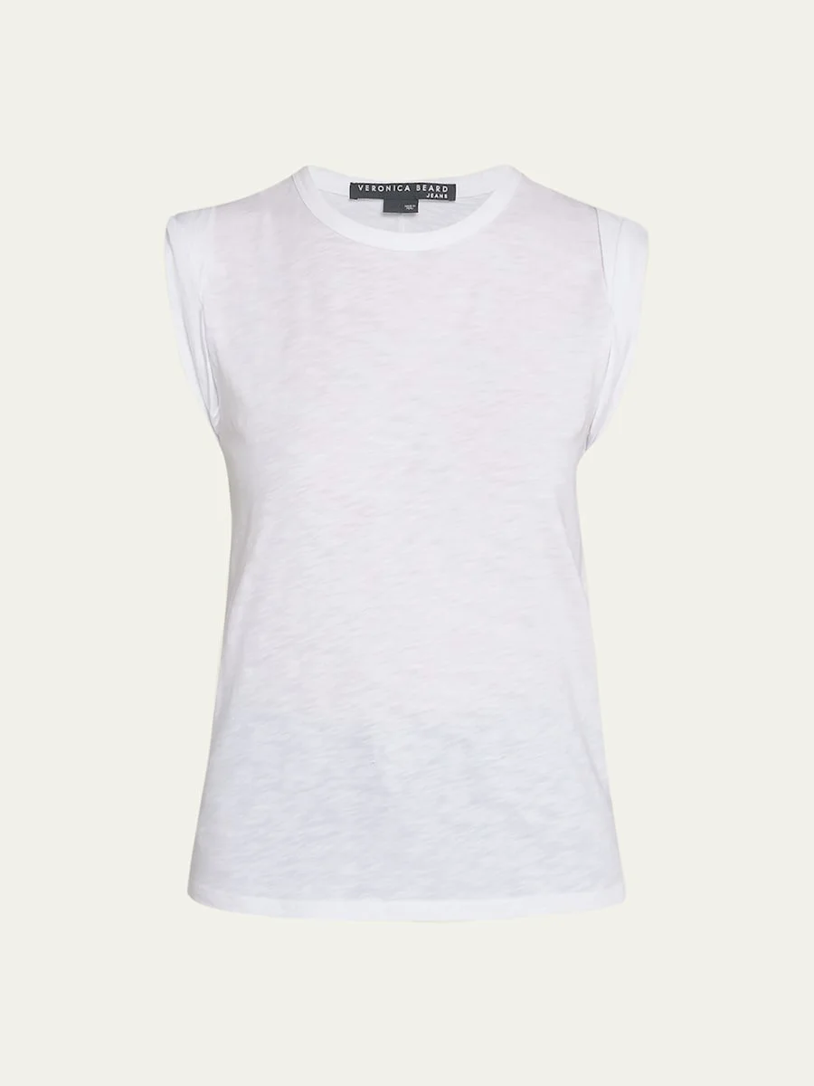 Veronica Beard "Dree" muscle tee. Approx. 23 3/4"L from shoulder to hem Crew neckline. Sleeveless. Relaxed fit. Straight hem. Pullover style. Pima cotton. Dry clean. Made in Peru.