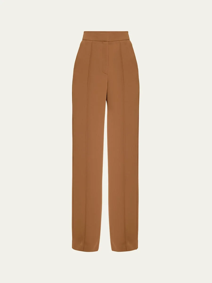 Veronica Beard "Edia" wide-leg pants featuring a pintuck front Approx. 11.6" rise; 35" inseam High rise Side slash pockets; back welt pockets Tailored fit Full length Hook/zip fly; belt loops Polyester/elastane Lining: Polyester Dry clean Made in USA from imported materials Model is 5'10"/177cm. Online Inquiries: BGS21_T5SU6| Store Inquiries: #4811032
