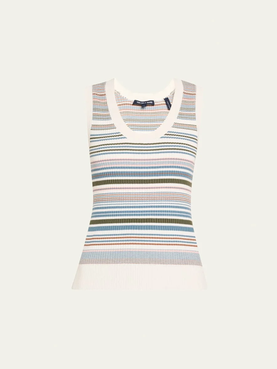 Veronica Beard "Ezinna" striped tank top in rib-knit Scoop neckline Sleeveless Fitted silhouette Hem sits at the hip Pullover style Cotton Dry clean Imported Online Inquiries: BGS21_T6RAL| Store Inquiries: #5025181