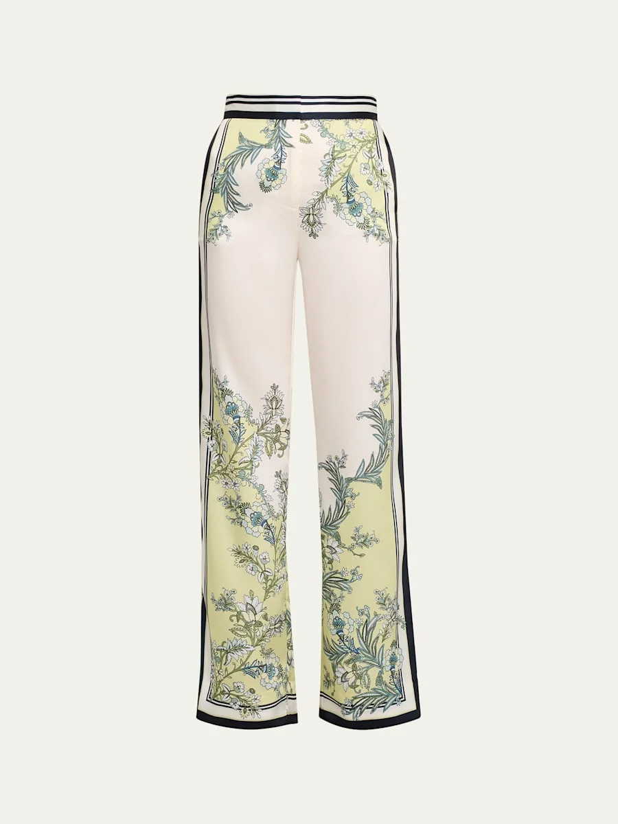 Cut from a soft, silky twill, the "Grigore" pants feature a lush, scarfinspired botanical print and contrasting stripes along the sides and waist Highrise waistband Side seam pockets Full length Wide legs Hidden hook/zip fly Polyester Imported SIZE amp; FITModel measurements: 5'10" tall Model is wearing a US size 4/Small