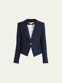 Veronica Beard "Hosanna" linen dickey jacket Compatible with Veronica Beard dickeys (sold separately) Peak lapels Single-breasted front Long sleeves; button cuffs Flap pockets Tailored fit Cutaway hem Single-button closure Linen Dry clean Made in USA from imported materials Model is 5'10"/177cm. Online Inquiries: BGS21_T4GEB| Store Inquiries: #4492618