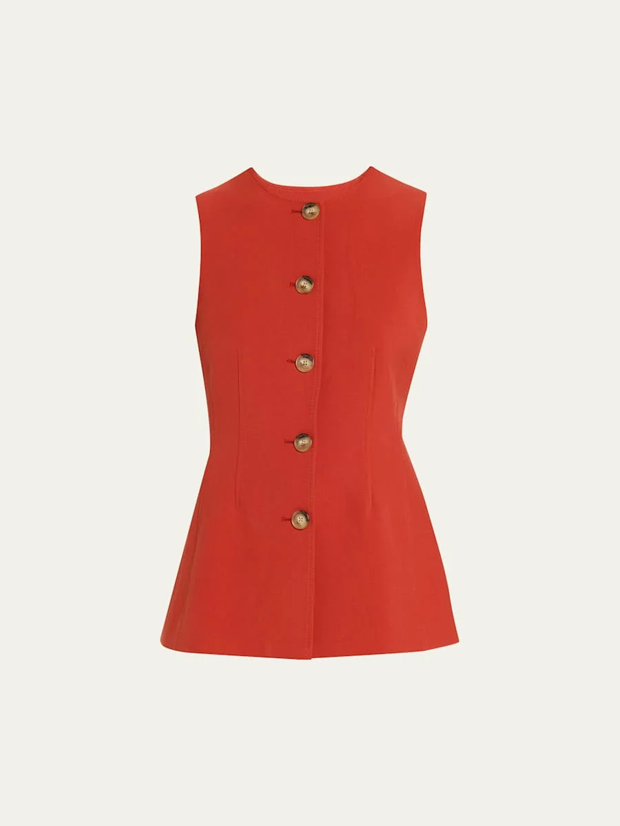 Veronica Beard "Jessup" vest adorned with figureflattering seams Crew neckline Sleeveless Tailored fit Hem falls to the hip Buttonfront Polyester/viscose/cotton Dry clean Made in USA