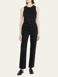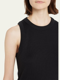 Veronica Beard "Jordyn" rib-knit tank top Crew neckline Sleeveless Racerback Slim fit Pullover style Cotton/elastane Made in Peru Model is 5'10"/177cm. Online Inquiries: BGS21_T4E9C| Store Inquiries: #4477002