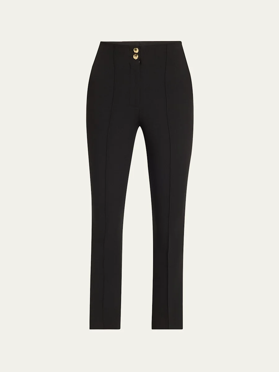 Veronica Beard "Kean" pants finished with front pintuck seaming Approx. 11.3" rise; 27" inseam Mid rise sits high on hip Slanted side and back welt pockets Cropped fit Skinny legs Button/zip fly Polyester/elastane Lining: Polyester Dry clean Made in USA from imported materials