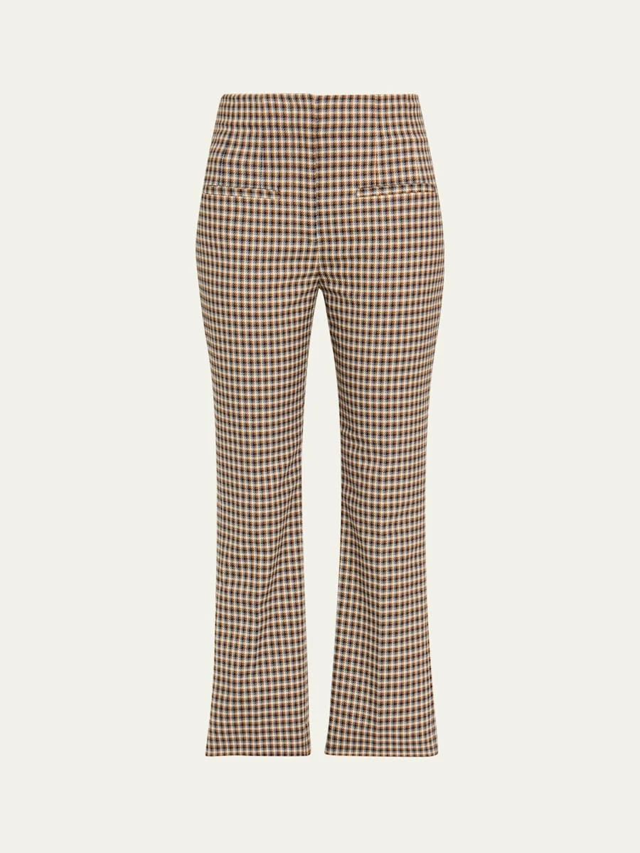 Knitted in houndstooth stretch-blend, the "Kean" pants by Veronica Beard elongate the figure for tailored on-trend silhouette. High rise Front welt pockets Slim, straight legs Cropped length Hook/zip fly Polyester/viscose/elastane Dry clean only Made in USA Online Inquiries: BGS21_T8RTL| Store Inquiries: #5372383