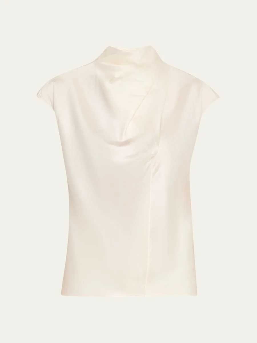Veronica Beard "Leilany" luxurious stretch-silk top High neckline Cap sleeves Draped fit Hem sits at the hip Self-tie back Silk/viscose/elastane Dry clean only Imported Online Inquiries: BGS21_T6K3N| Store Inquiries: #4995184