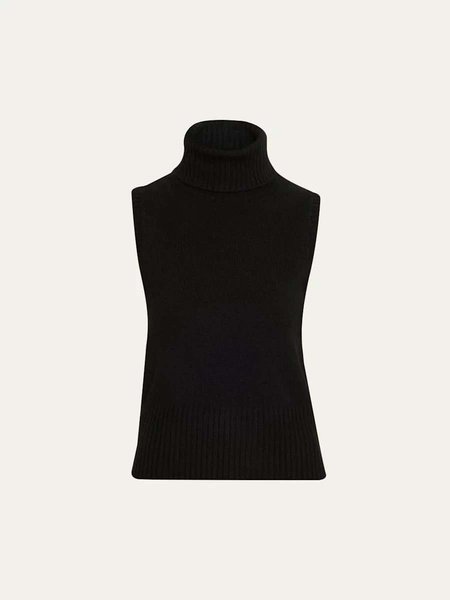 Veronica Beard "Mazzy" cashmere sleeveless sweater with ribbed trim Turtleneck Easy fit Hem sits at the hip Pullover style Cashmere Imported Model is 5'10"/177cm. Online Inquiries: BGS21_T5AVL| Store Inquiries: #4670669