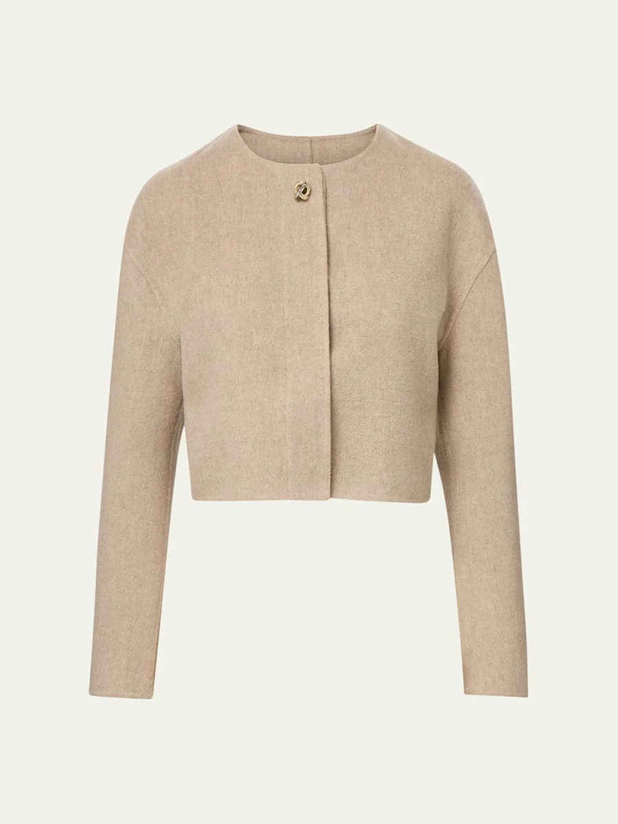 A sophisticated closet staple, the "Philips" jacket by Veronica Beard is crafted of a luxurious cashmere-blend and decorated with a gold-tone knot button. Round neckline Dropped shoulders Long sleeves; approx. 33"L Relaxed fit Cropped length Concealed button-front Virgin wool/cashmere Unlined Dry clean Imported Online Inquiries: BGS21_T7MET| Store Inquiries: #5180258