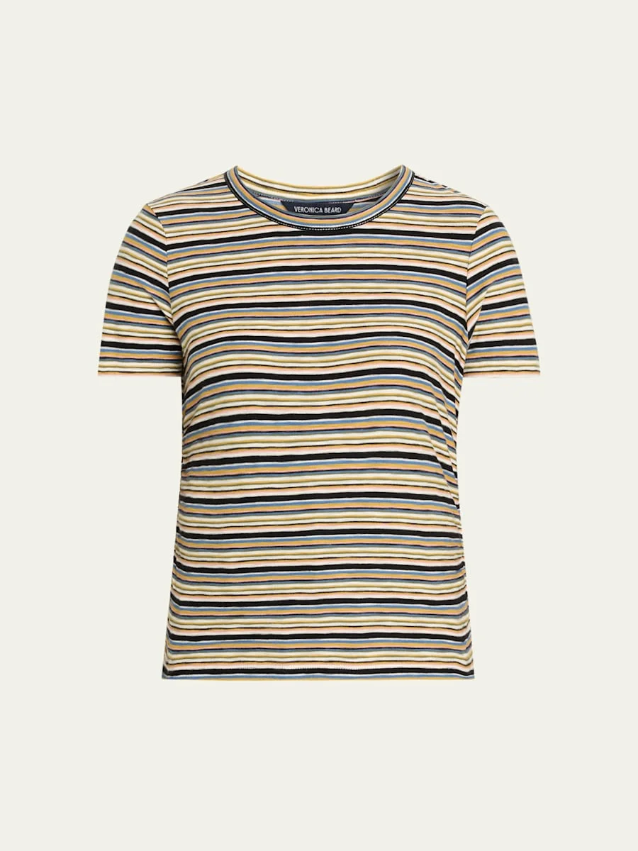 Veronica Beard "Remus" essential striped tee crafted from ultrasoft Peruvian cottonjersey Crew neckline Short sleeves Slim fit Hem sits at the hip Pullover style Cotton Machine wash cold Made in Peru SIZE amp; FITModel measurements: 5'10" tall Model is wearing a US size 4/Small