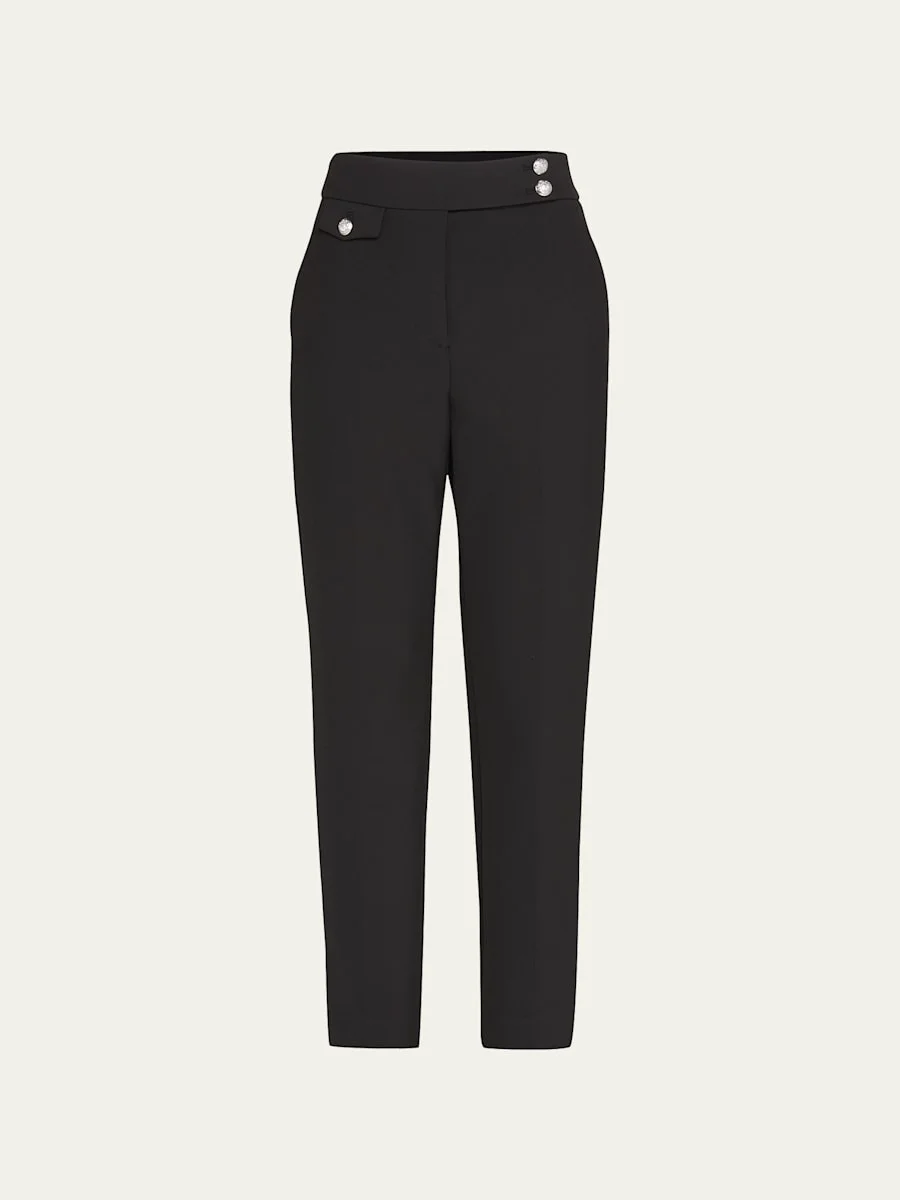 Veronica Beard "Renzo" pants Approx. 26" inseam; 14" leg opening; 12" front rise; 16.5" back rise (size 8) High rise Flat front Side pockets; flap pocket Back welt pockets Straight legs Cropped at the ankle Button/zip fly Polyester/viscose Dry clean Imported