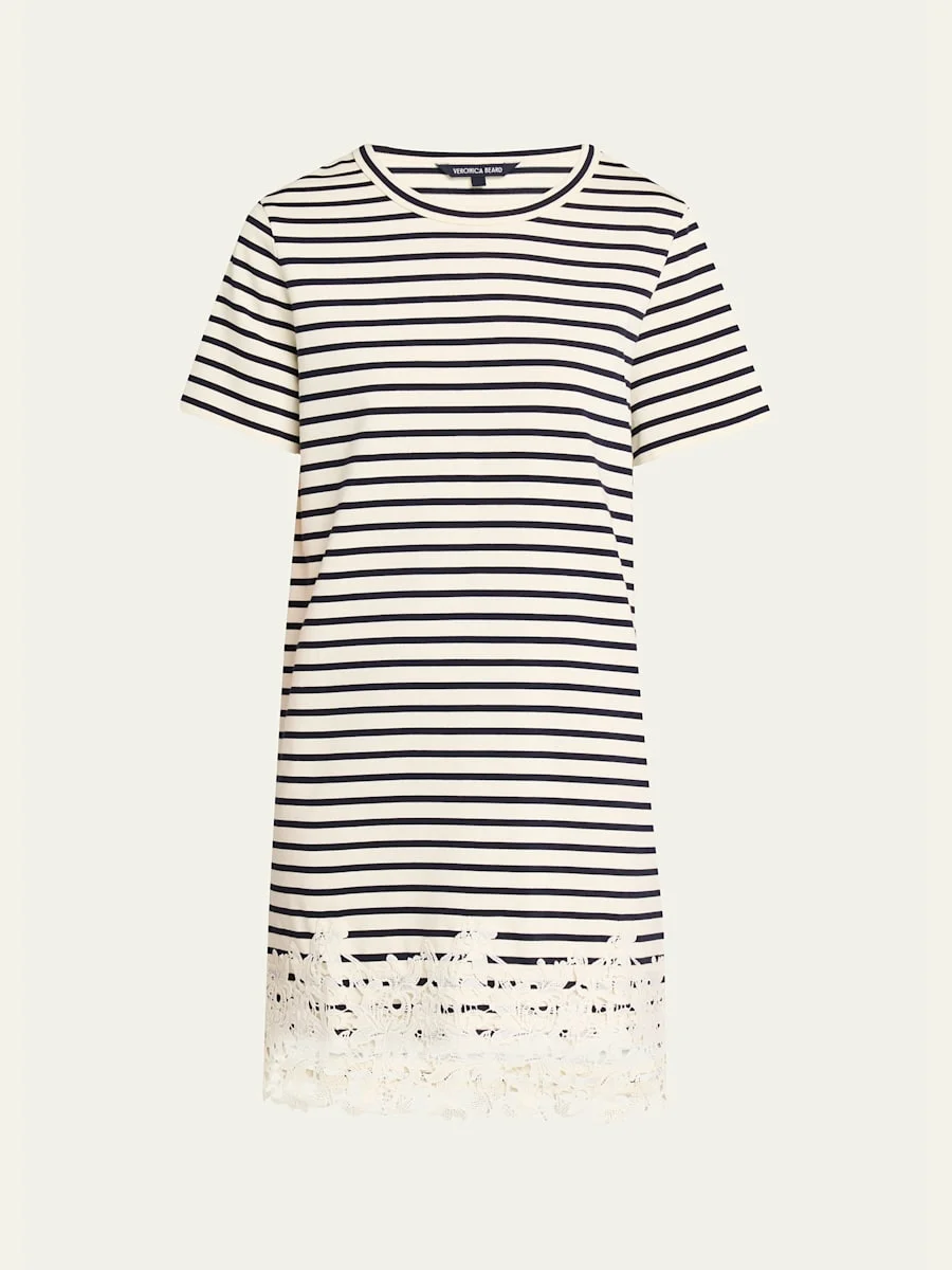 RHUE STRIPED LACE-HEM MINI DRESS