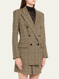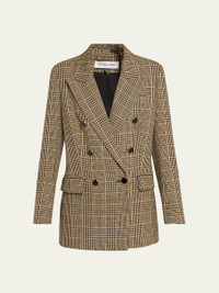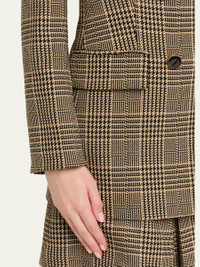 Veronica Beard "Rhys" dickey jacket in plaid Compatible with Veronica Beard dickey's (sold separately) Wide peak lapels Doublebreasted front Long sleeves with button cuffs; approx. 32.3"L Chest welt pocket Hip flap pockets Tailored fit Doublevented back Buttonfront Polyester/viscose/elastane Lining: Polyester/elastane Dry clean Made in USA from imported materials