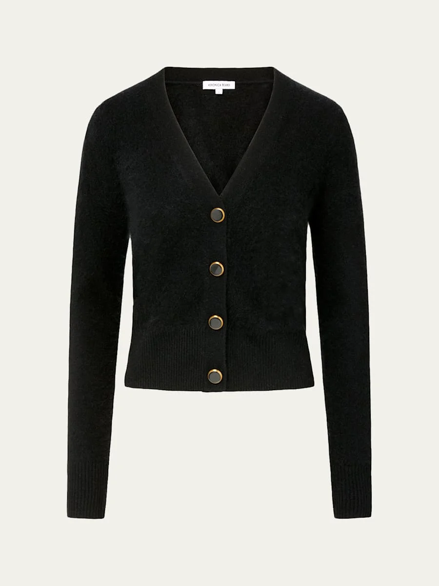 Veronica Beard "Solene" sleek cardigan in luxurious brushed cashmere V neckline Long sleeves; approx. 30.5"L Classic fit Hem sits at the hip Buttonfront Cashmere Unlined Dry clean Importedv