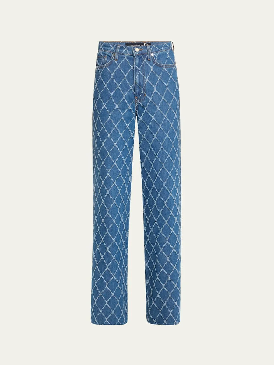 Taylor Diamond-Print High-Rise Wide-Leg Jeans