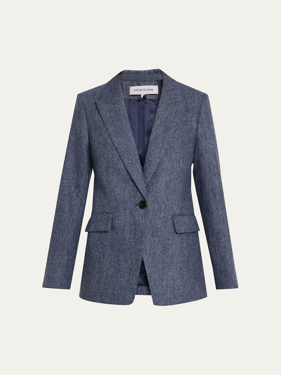 Veronica Beard "Vega" wool dickey jacket Compatible with Veronica Beard dickey's (sold separately) Peak lapels Singlebreasted front Long sleeves with button cuffs Hip flap pockets Tailored fit Cutaway hem Buttonfront Wool Dry clean only Imported