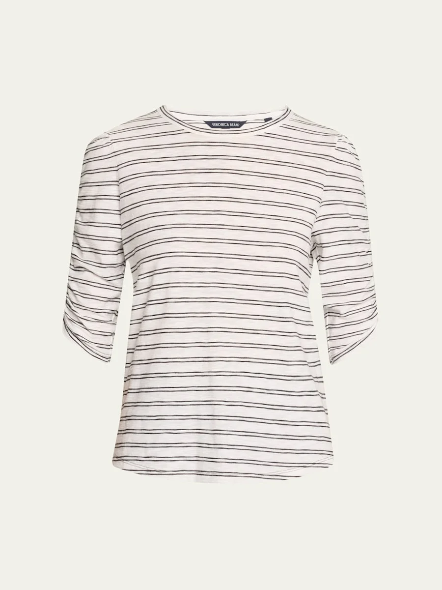 Waldorf Stripe Ruched-Sleeve Tee