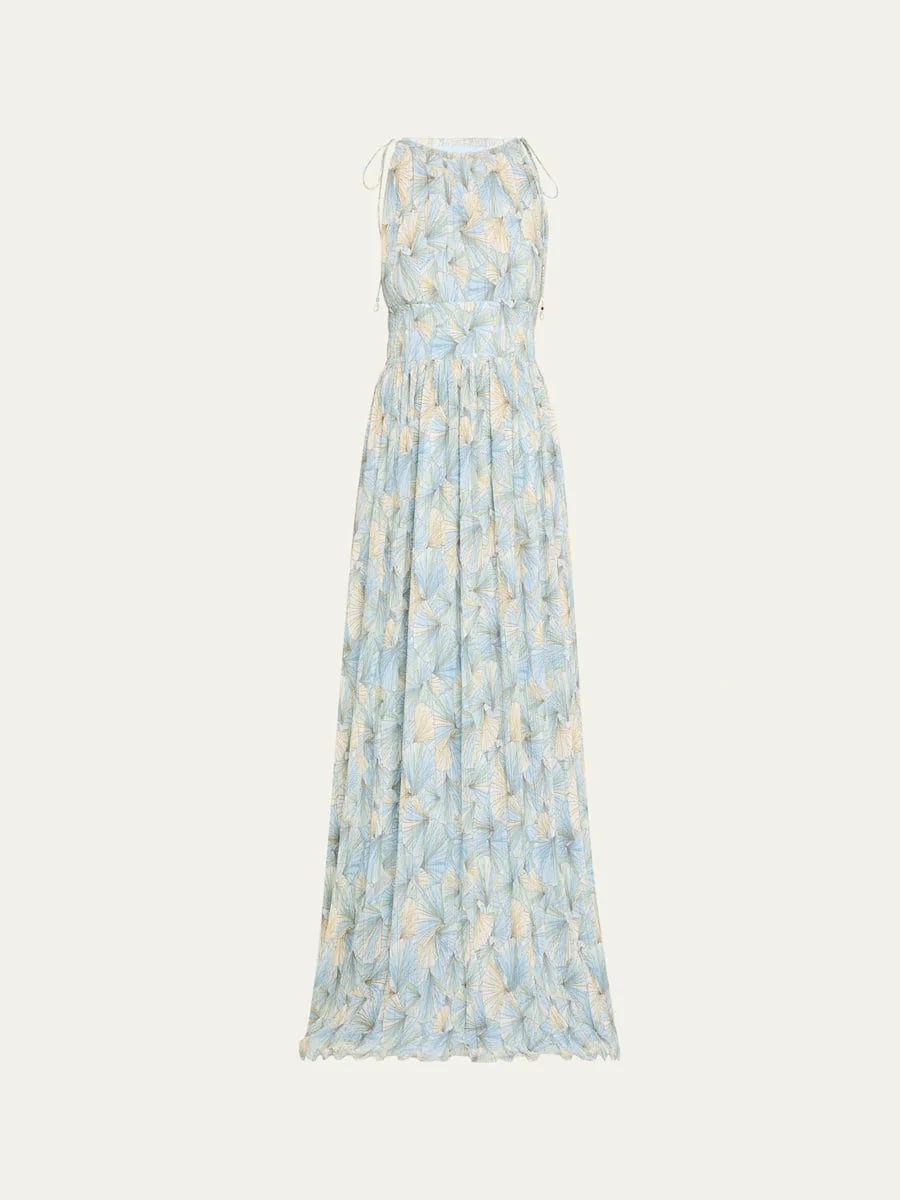 Veronica Beard "Yardley" floral-print maxi dress High neckline with adjustable ties Sleeveless Empire waistline Floor-sweeping hem Side zip Polyester Dry clean Imported Online Inquiries: BGS21_T6WZH| Store Inquiries: #5021391