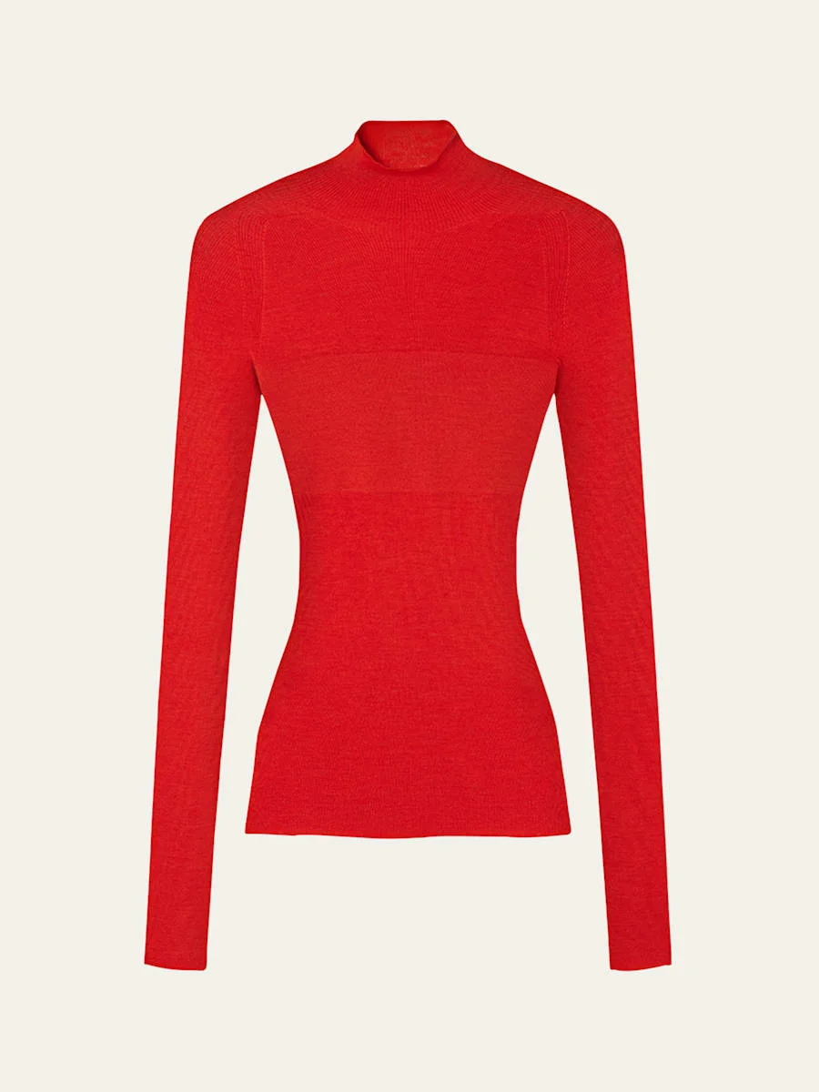 Merino Wool Fitted Ribbed Knit Top