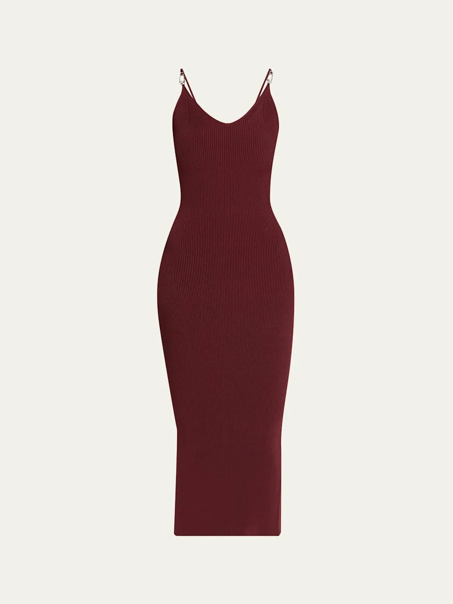 Safety-Pin Straps Rib Knit Midi Dress