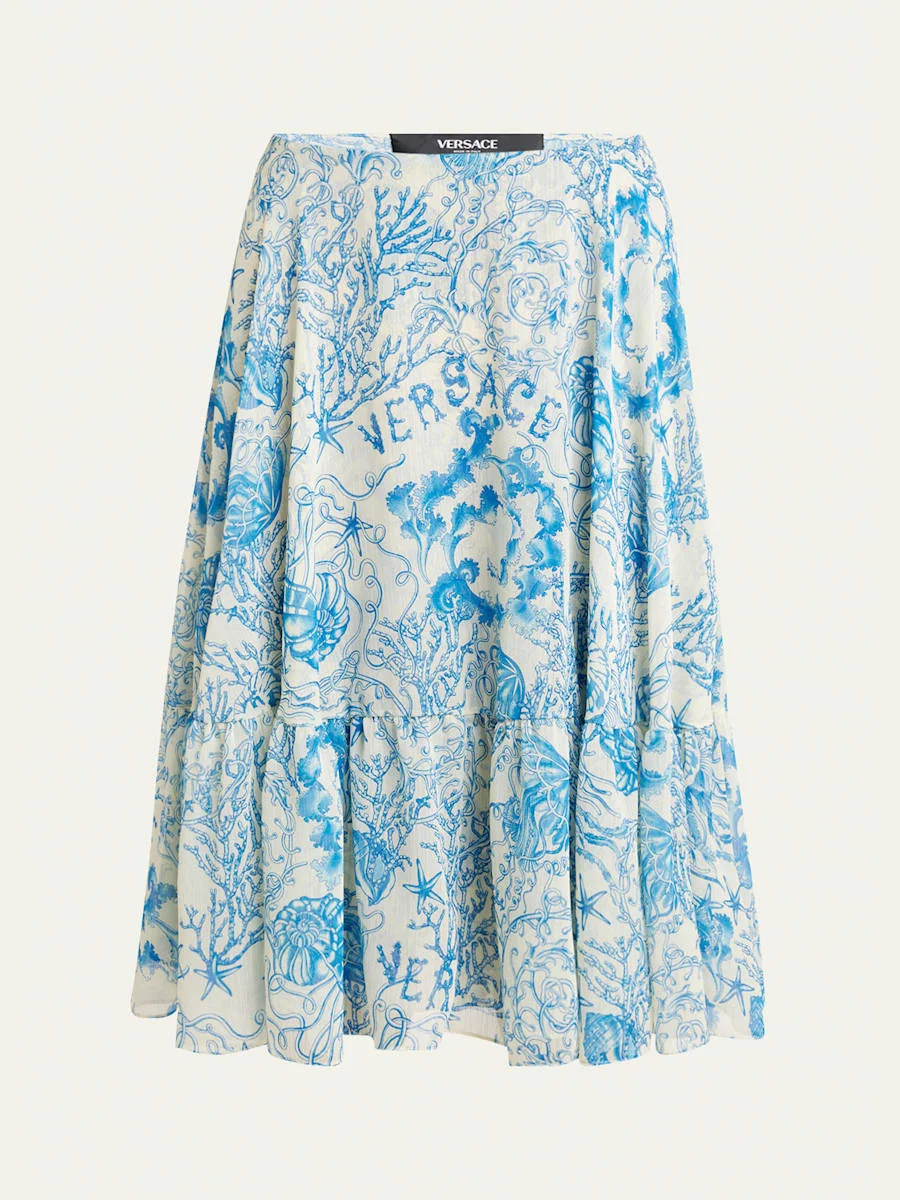 Underwater Barocco Crêpe Flowy Midi Skirt