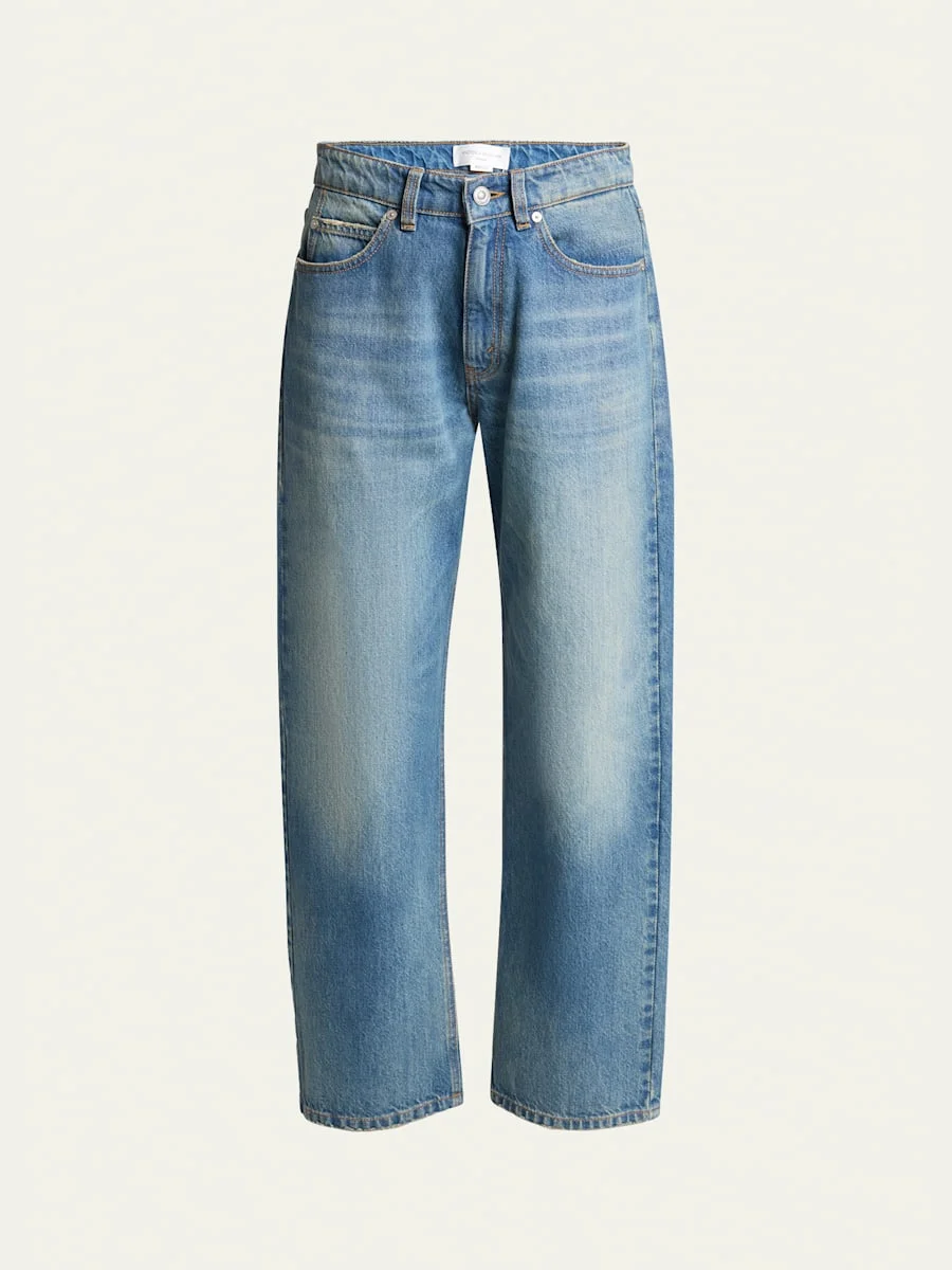 Victoria Beckham "Bernie" classic denim jeans with light whiskering Cropped at the ankle High rise Relaxed, straight leg cut Fivepocket style Button/zip fly; belt loops Cotton Dry clean Made in Italy