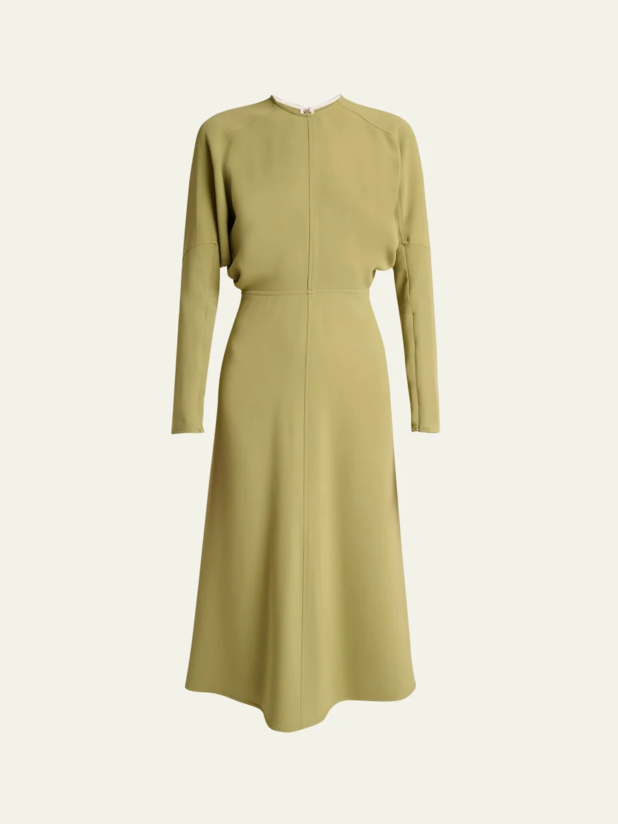 Dolman Long-Sleeve Cady Midi Dress