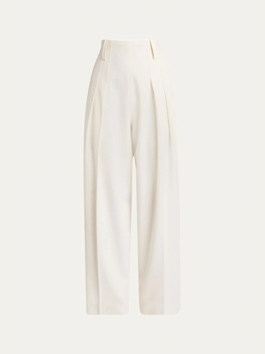 Victoria Beckham cinched wool-blend trousers finished with front pleating High waist Side seam and back welt pockets Full length Wide legs Oversized belt loops Wool/polyester Dry clean Made in Portugal Online Inquiries: BGS21_BA4QY| Store Inquiries: #5035968