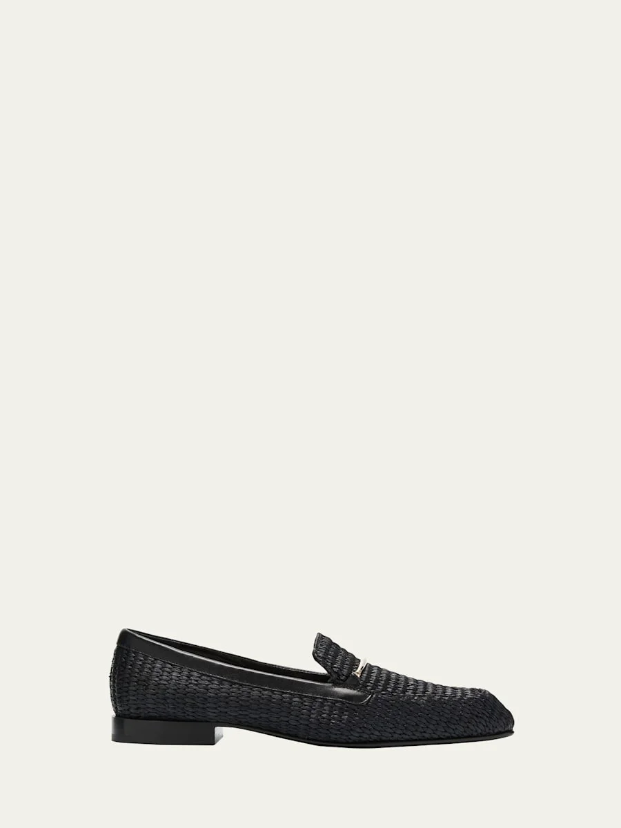 Victoria Beckham chic woven raffia loafers with leather trim 1.38 in / 35 mm flat heel Round apron toe Notched vamp with metal strap accent Slip-on style Leather outsole Lining: Goat leather Spot clean Made in Italy Online Inquiries: BGS21_X6CQY| Store Inquiries: #4669912