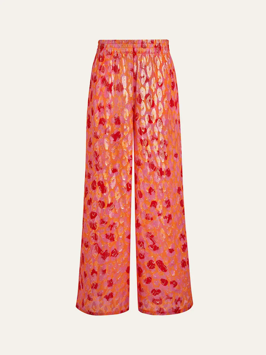 Vilebrequin pants in an abstract leopard print with metallic detailing Mid-rise waistband Side seam pockets Full length Wide legs Pull-on style Silk/polyester Hand wash, machine wash cold, line dry Made in Morocco Model is 5'10"/177cm. Online Inquiries: BGS21_T5UWN| Store Inquiries: #4831210