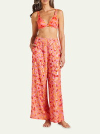 Abstract Leopard Printed Wide-Leg Silk Pants