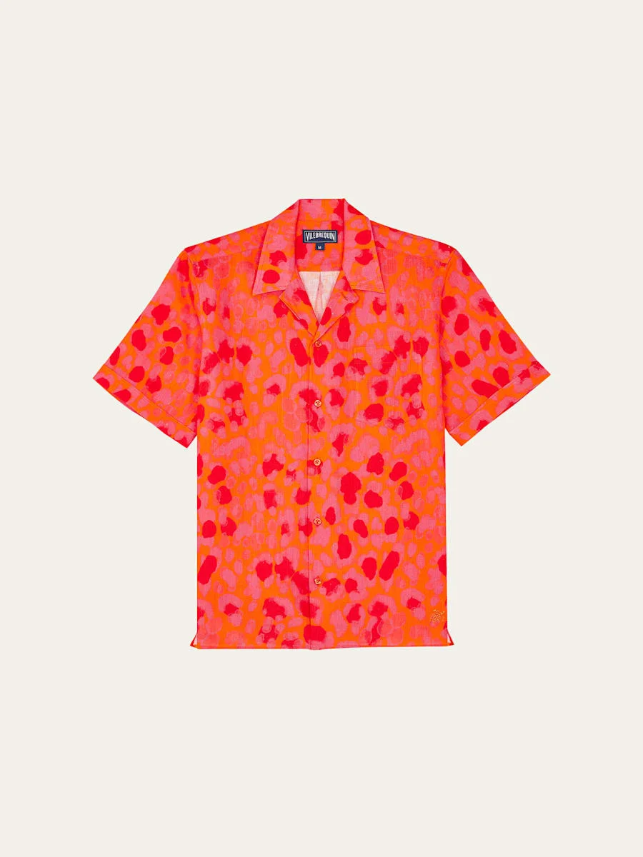 Vilebrequin sport shirt in new leopard print Camp collar Button placket Chest patch pocket Short sleeves Classic fit Linen Hand wash, machine wash cold, line dry Made in Morocco Model is 6'1"/185cm. Online Inquiries: BGS21_NC999| Store Inquiries: #4835705