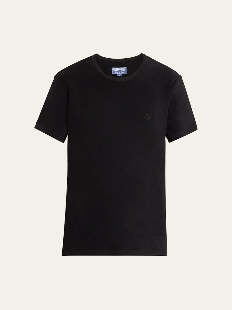 Vilebrequin T-shirt in soft, absorbent terry toweling Round neckline Tonal logo at chest Short sleeves Pullover style Organic cotton/nylon Hand wash, machine wash cold, line dry Made in Italy Model is 6'1"/185cm. Online Inquiries: BGS21_NC279| Store Inquiries: #4790402