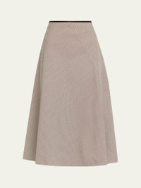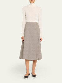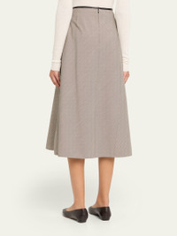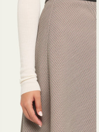 Plaid woolblend skirt elevated with asymmetric seams by Vince. High rise Circlecut silhouette Hem falls below the knee Center back zip Wool/polyester Hand wash or dry clean Imported