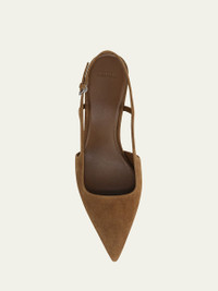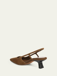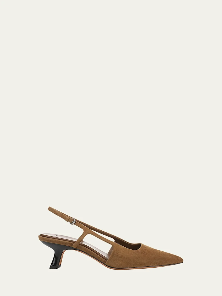 Vince "Bianca" pumps rendered in buttery suede and set on a walkable low heel formed in a modern, sculptural shape 2.00 in / 50 mm kitten heel Pointed toe Anchored, adjustable slingback Leather outsole Lining: Leather Spot clean Imported