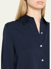 Vince solid silk blouse Point collar Long sleeves with button cuffs Classic fit Hem falls to the hip Buttonfront Silk/elastane Hand wash or dry clean Imported