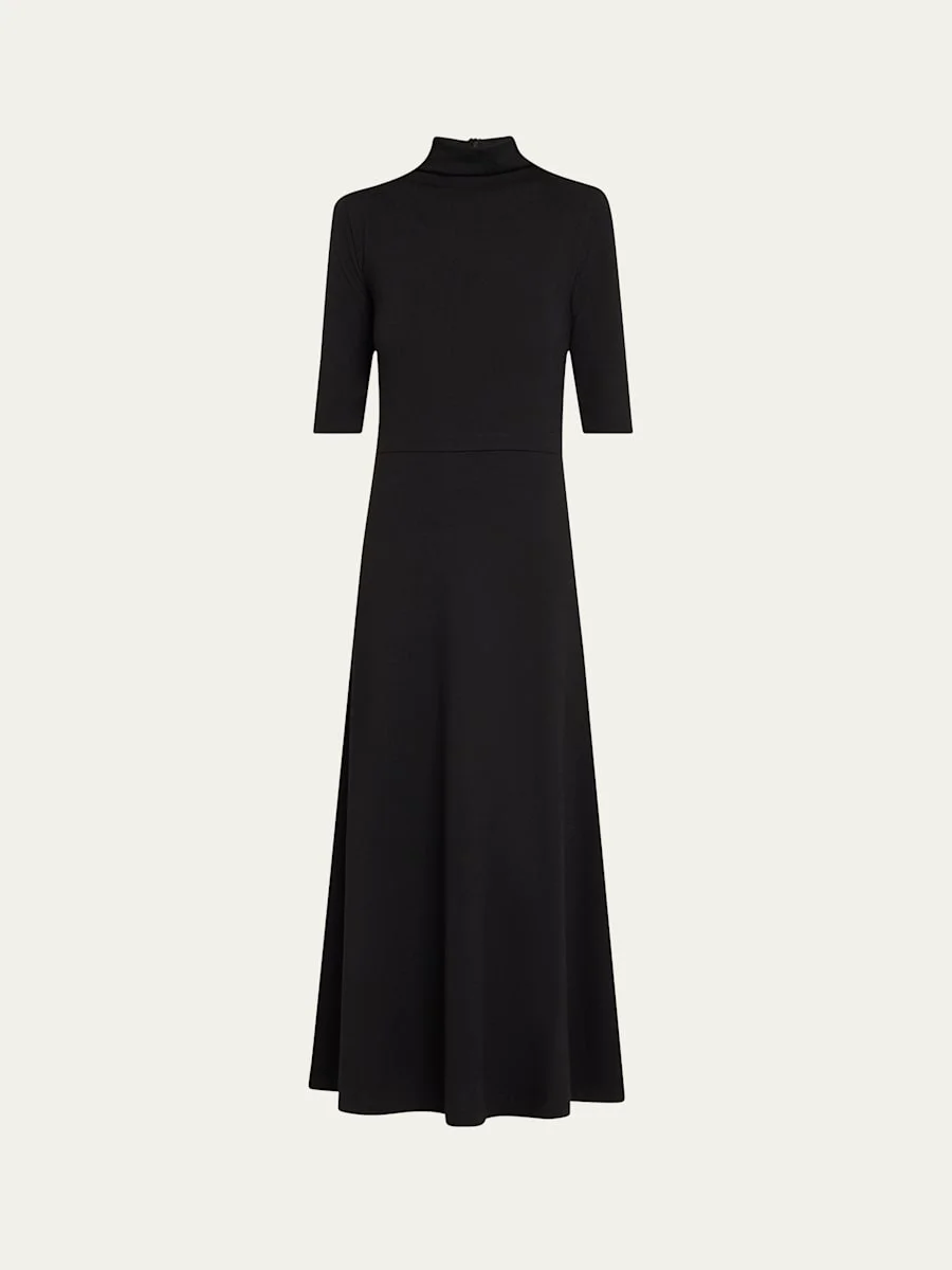 Vince solid dress cut from soft and stretchy fabric Turtleneck Elbow-length sleeves A-line silhouette Hem falls below the knee Concealed back zipper Rayon/polyester Imported Online Inquiries: BGS21_T8W9T| Store Inquiries: #4593566