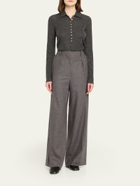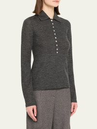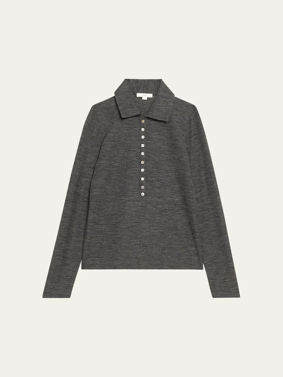 Fineknit wool top finished with delicate motherofpearl buttons by Vince. Spread collar; buttonplacket Long sleeves Slim fit Hem sits at the hip Wool Dry clean Imported