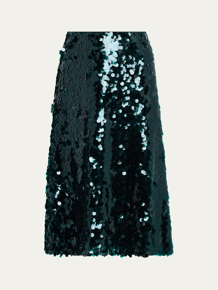 Vince "Lucite" sequin midi skirt Highrise sits high on the hips Hem hits around the knee Skirt falls straight from hip to hem Zip closure Polyester Imported