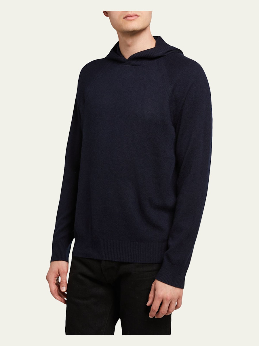 Vince hoodie in solid knit. Hooded neckline. Pullover style. Straight hem. Cashmere. Imported.