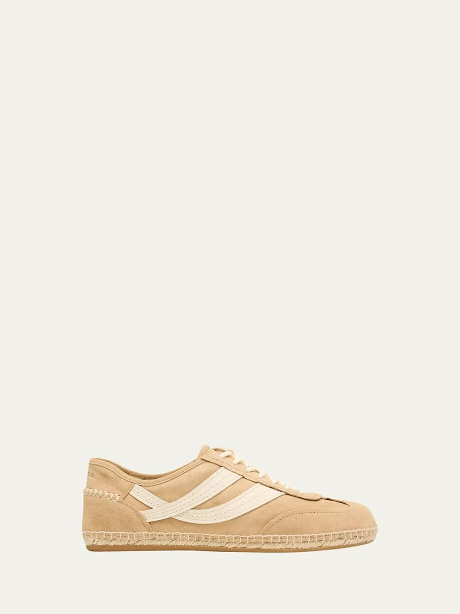 The "Oasis" espadrille sneakers by Vince are crafted from suede with smooth leather accents Flat heel Reinforced round toe Laceup vamp Rubber outsole Made in Italy