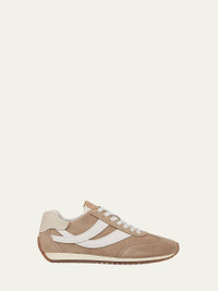 Vince "Oasis" leather and suede retro runner sneakers 1.38 in / 35 mm flat heel Round reinforced toe Laceup vamp Cushioned footbed Rubber outsole Lining: Leather Professional cleaning recommended Imported