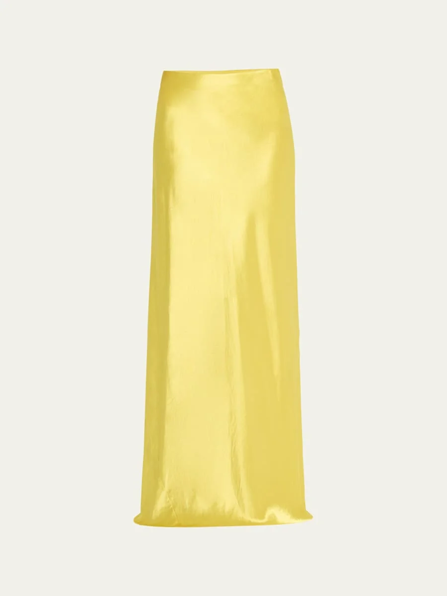 Vince luminous satin skirt is ideal for elevated daytime wear Sits on the natural waist A-line silhouette Full length Slip-on style Acetate Hand wash or dry clean Imported Model is 5'10"/177cm. Online Inquiries: BGS21_T5XA0| Store Inquiries: #4672940