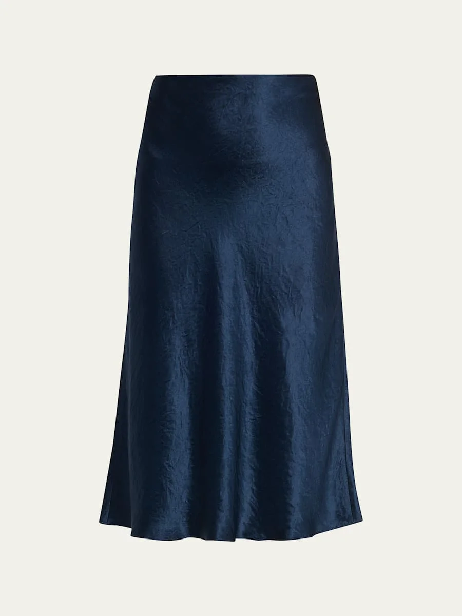 EXCLUSIVELY AT NEIMAN MARCUS Vince slip skirt. A-line silhouette. Midi length. Pull-on style. Acetate. Imported. Size Note: • Model Height: 5'11"/ waist 24”/ hips 34"/ bust 32" • Model is wearing size Medium Online Inquiries: BGS21_T4GWR| Store Inquiries: #2913140