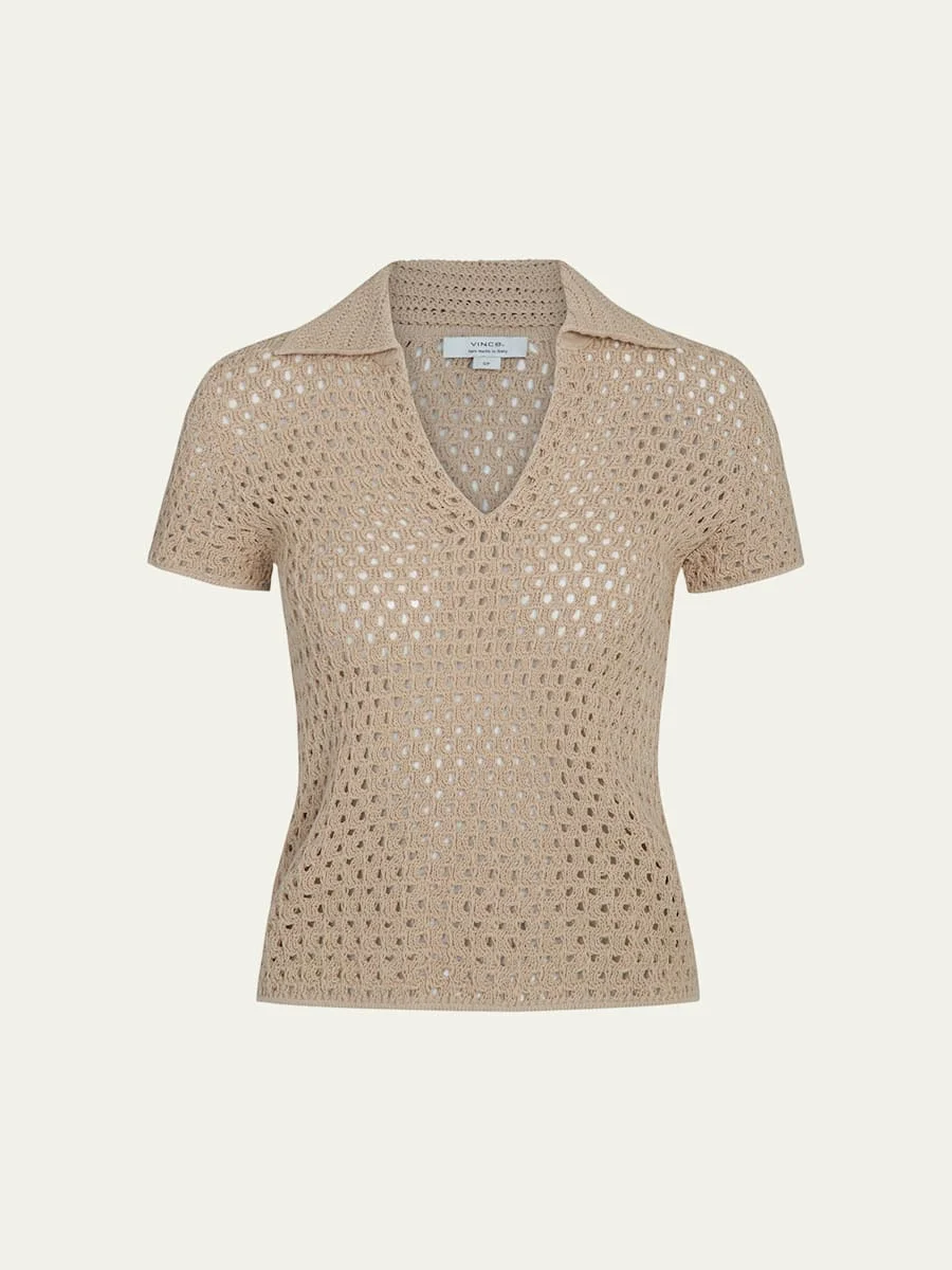 Vince macrame top Point collar; split V neckline Short sleeves Easy fit Hem sits at the hip Pullover style Cotton Hand wash cold or dry clean Imported Shipping Direct from Vendor, usually ships within 10 business days. Online Inquiries: BGS21_T6EEH| Store Inquiries: #4969064
