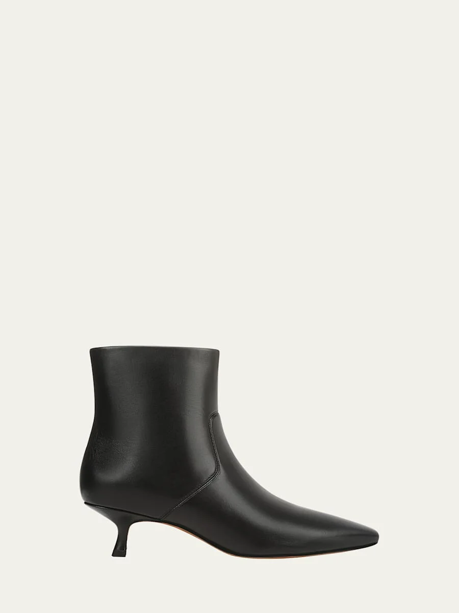 Vince "Simone" versatile leather ankle boots 1.75 in / 45 mm architectural kitten heel Boot shaft, approx. 5.1"H Pointed toe Side zip eases dress Leather outsole Lining: Leather Spot clean Imported