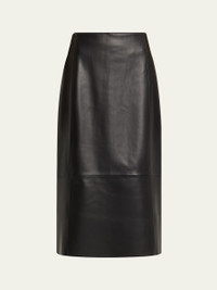 Luxurious lambskin leather midi skirt by Vince. High rise Skirt falls straight from hip to hem Center back vent Invisible back zip Leather Lining: Polyester Professional clean only by leather expert Imported