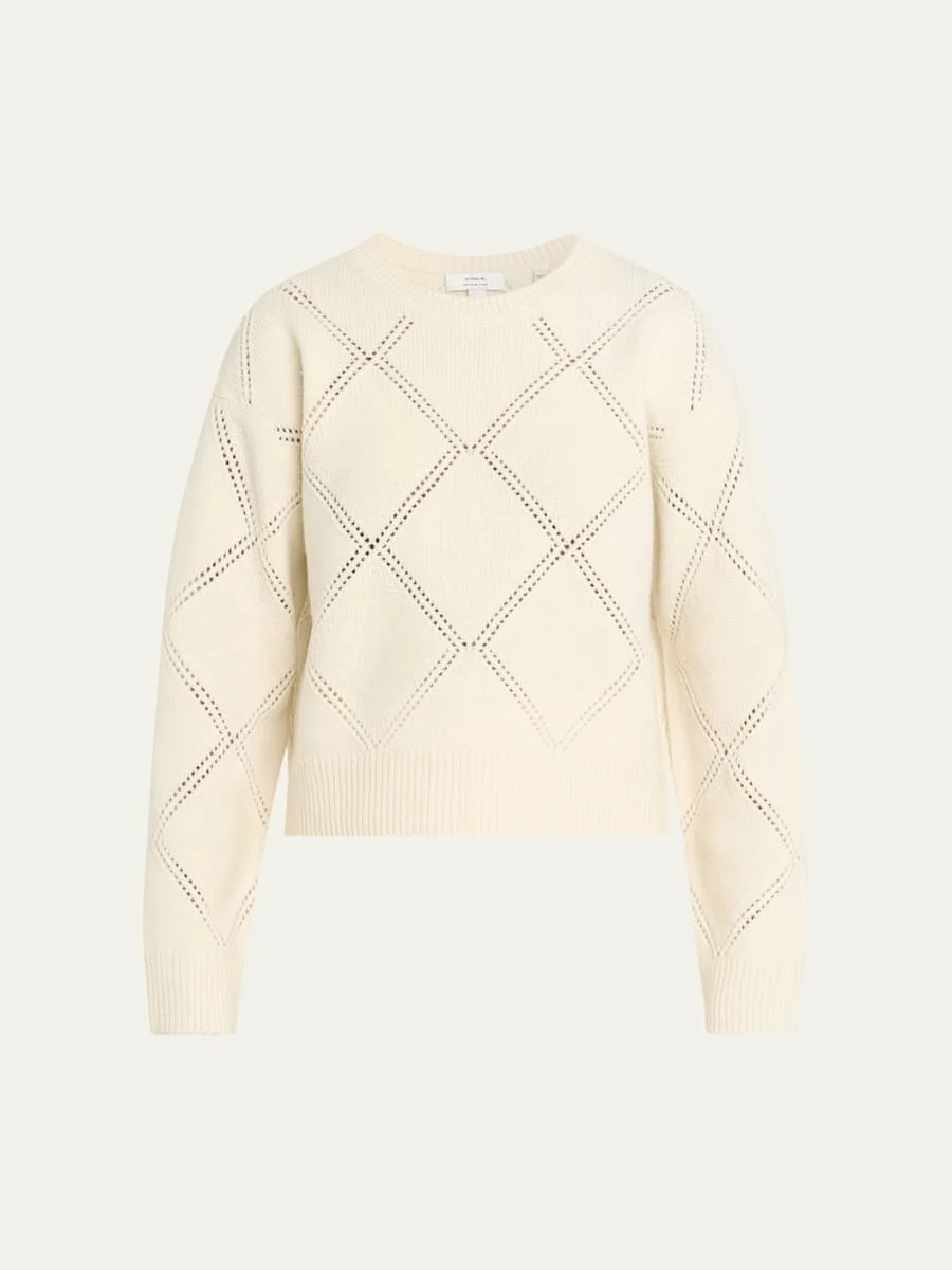 Pointellestitched diamonds define this Italian wool sweater by Vince for an unexpected update to the classic argyle design Approx. 20.5"L from shoulder to hem Crew neckline Long sleeves Relaxed fit Hip length Pullover style Wool/spandex Unlined Hand wash cold separately or dry clean Imported